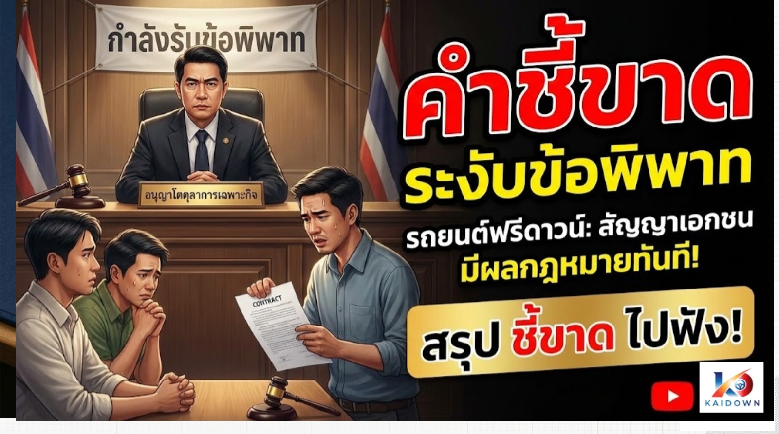 ๑. ชี้ขาดว่าสัญญาซื้อขายดาวน์และโอนสิทธิเช่าซื้อรถยนต์ ระหว่างผู้เรียกร้องกับผู้คัดค้านที่ ๑ และผู้คัดค้านที่ ๒ มีผลสมบูรณ์ตามกฎหมายทุกประการ ไม่ตกเป็นโมฆะ และผู้เรียกร้องมีสถานะเป็นผู้เสียหายโดยชอบธรรม มีอำนาจในการเรียกร้องและดำเนินคดีนี้อย่างสมบูรณ์